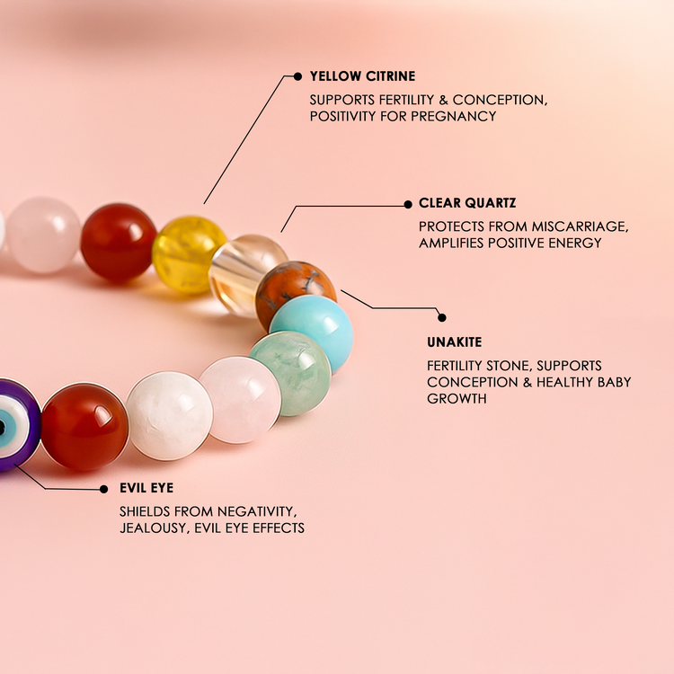 Crafted with powerful natural healing gemstones, this fertility bracelet works on both physical and energetic levels, helping women feel protected, calm, and emotionally strong throughout their conception and pregnancy journey.